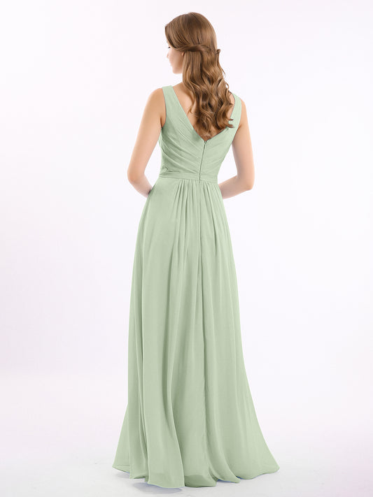 Babaroni GeorgiaGeorgia Escote En V Gasa Largo Vestido De Dama De Honor Salvia Polvorienta