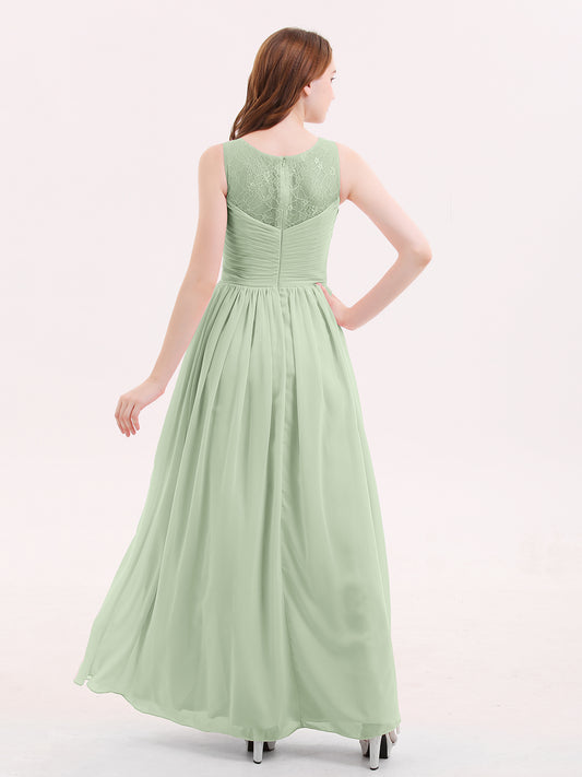 Babaroni GwendolynGwendolyn Encaje Y Gasa Largo Corte De Dama De Honor Salvia Polvorienta