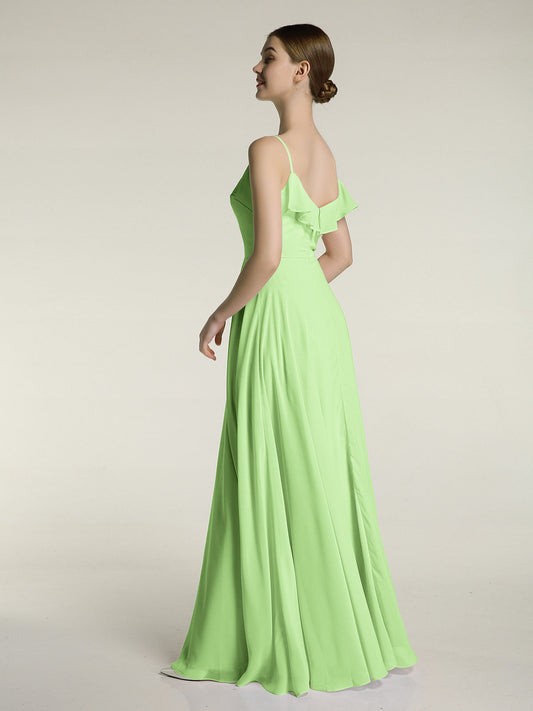 Babaroni JuliaVestidos largos de chiffon con tirantes finos y escote en V Salvia