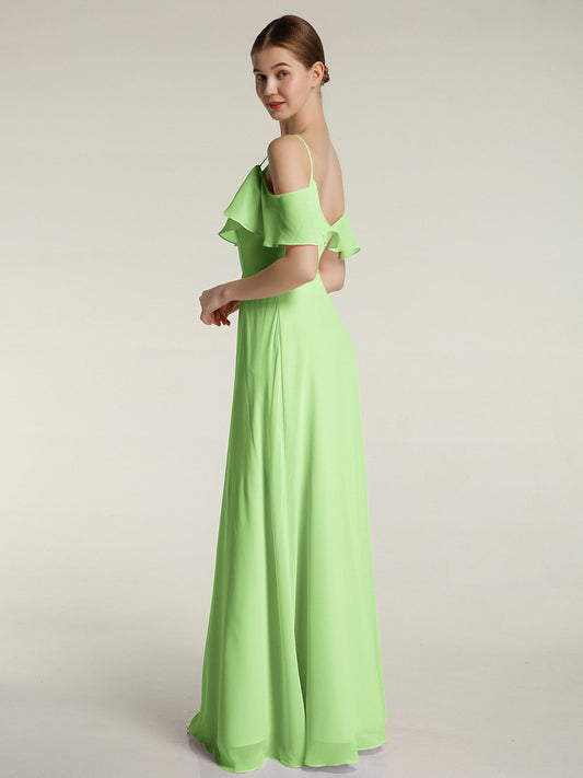 Babaroni JessicaVestidos de dama de honor de chiffon con tirantes finos Salvia