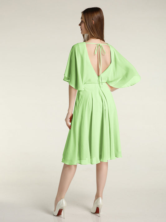 Babaroni SelenaVestidos cortos de chiffon con escote tipo scoop y mangas de volantes Salvia