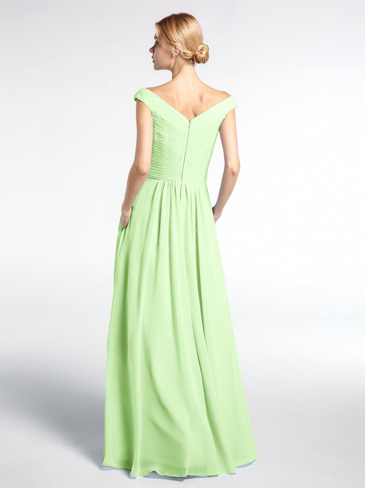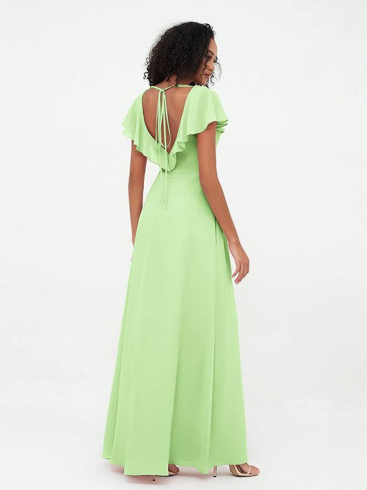 Babaroni PagVestidos estilo A-line de chiffon con escote en V y abertura Salvia
