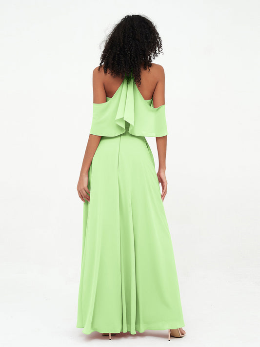 Babaroni IvyVestidos máximos de chiffon estilo halter con hombros descubiertos Salvia