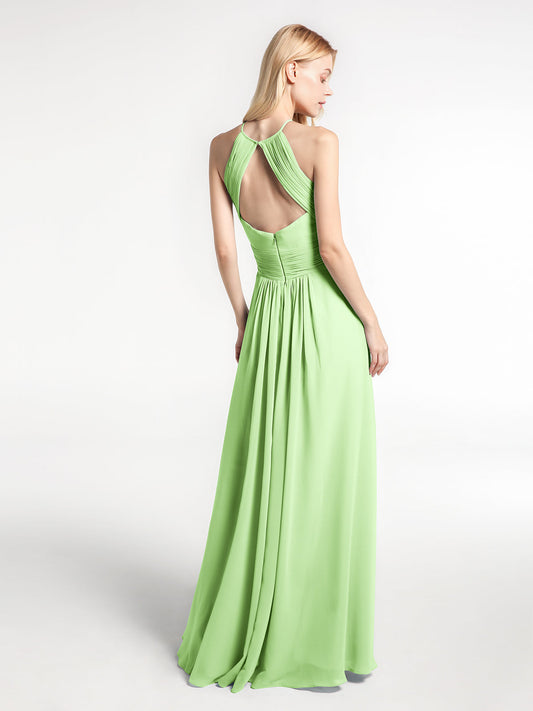 Babaroni VictoriaVestido de chiffon con cuello halter y abertura en forma de cerradura con bolsillos Salvia