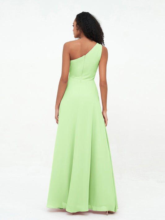 Babaroni XantheVestidos máximos de chiffon de un solo hombro con abertura Salvia
