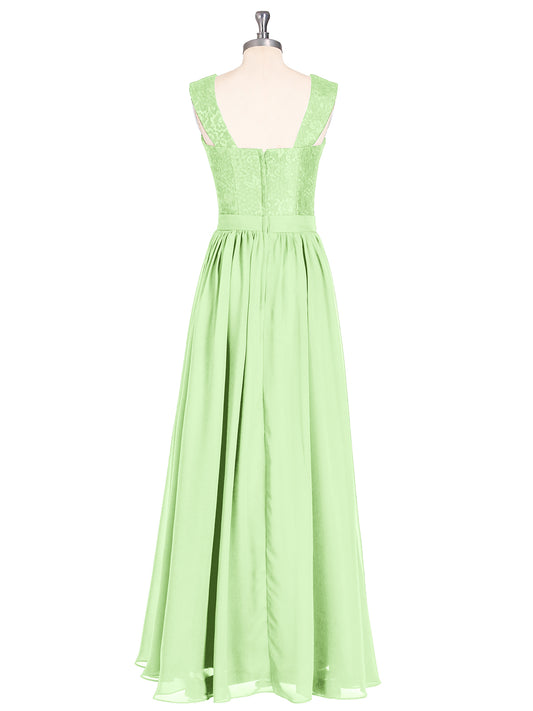 Babaroni VivienVivien Hombro Tirante Encaje Y Gasa Largo Vestido Salvia
