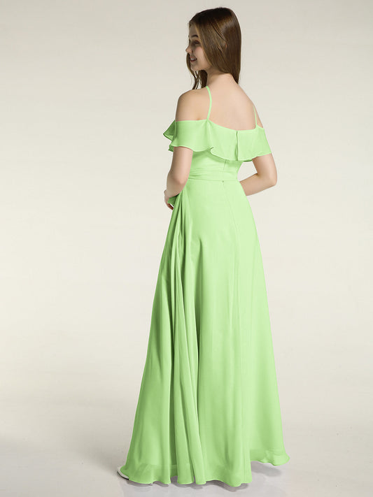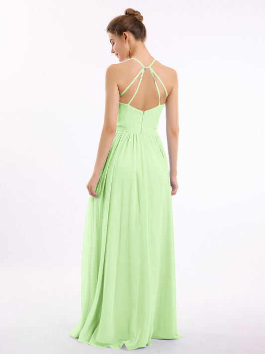 Babaroni LesleyVestidos largos de chiffon estilo halter con doble tirante Salvia