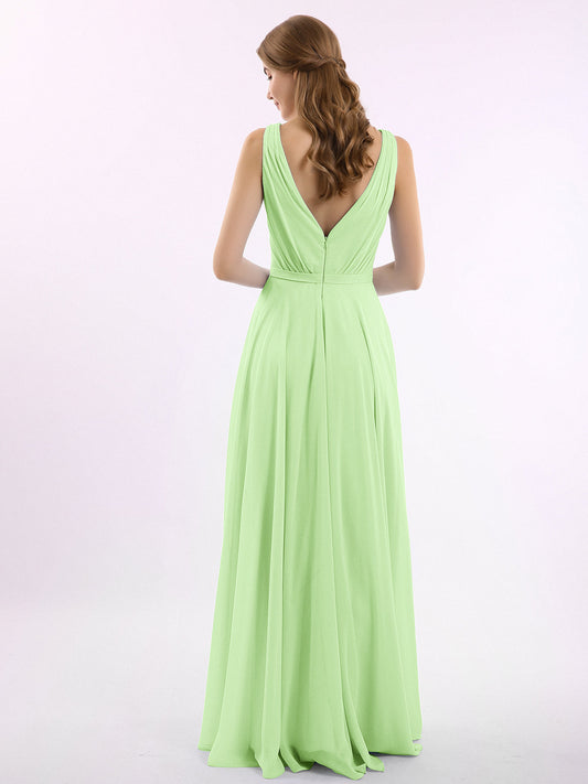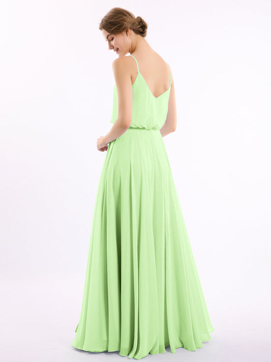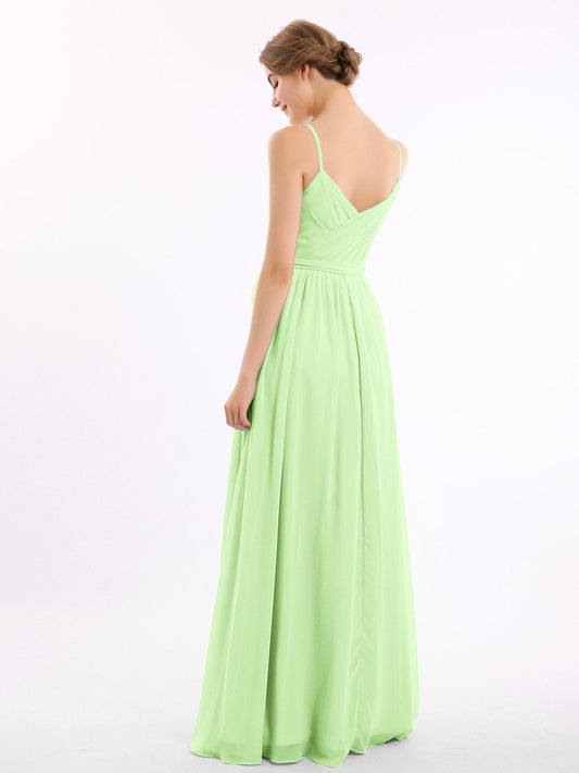 Babaroni VickyVestidos de dama de honor de chiffon con escote en V y tirantes finos Salvia