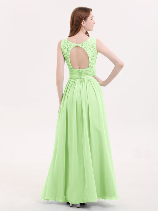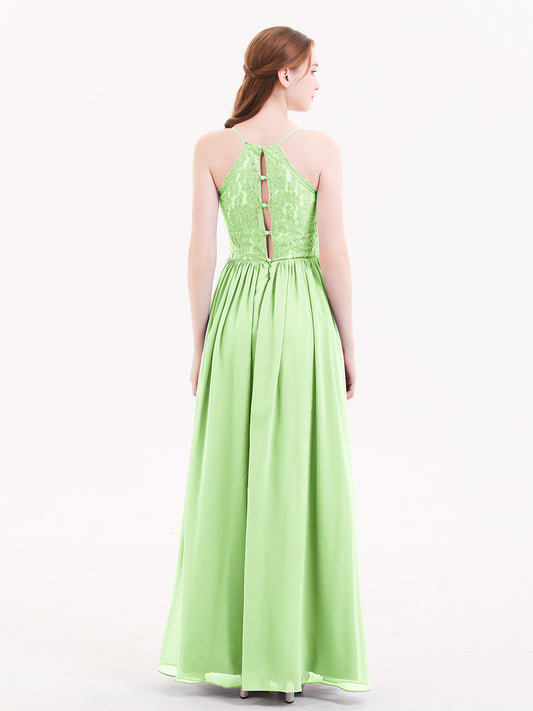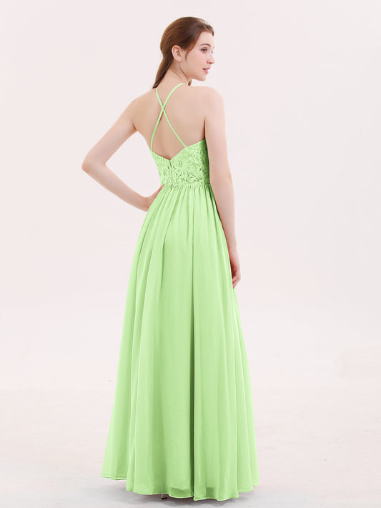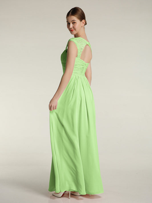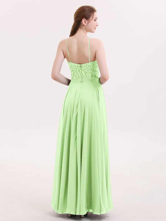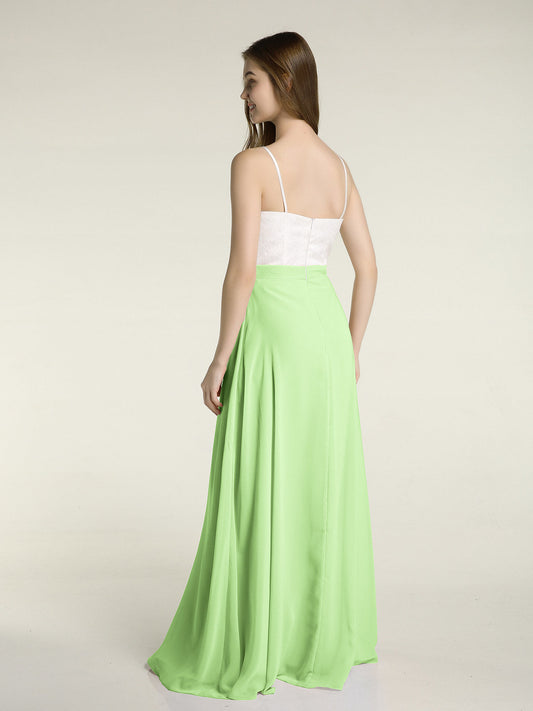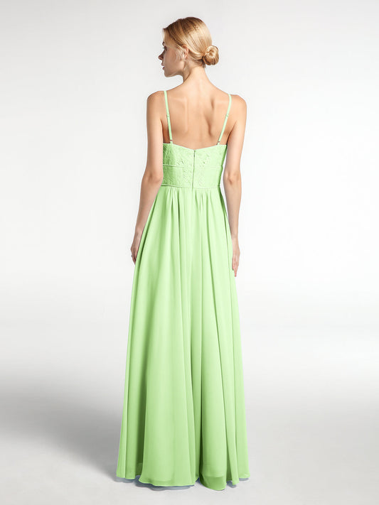Babaroni CherryVestidos largos de encaje y chiffon con tirantes finos Salvia