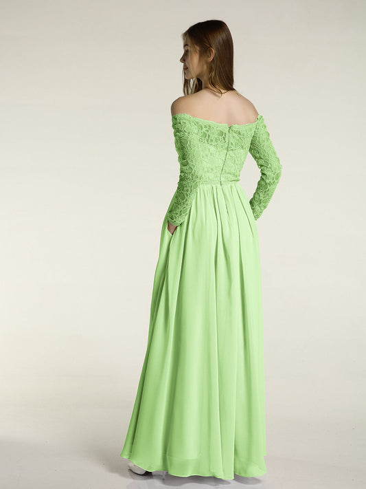 Babaroni MeilaniVestidos de encaje y chiffon con mangas largas y bolsillos Salvia