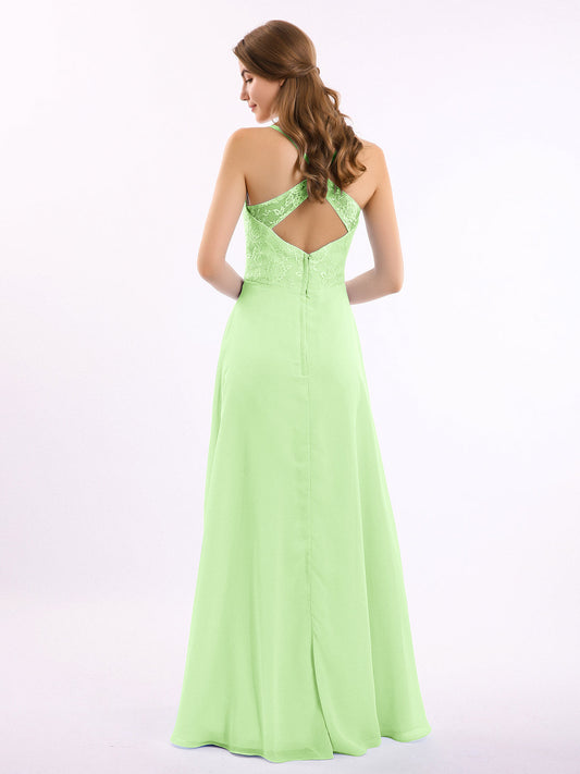 Babaroni LucilleVestidos largos de chiffon con encaje en escote en V profundo y espalda descubierta Salvia