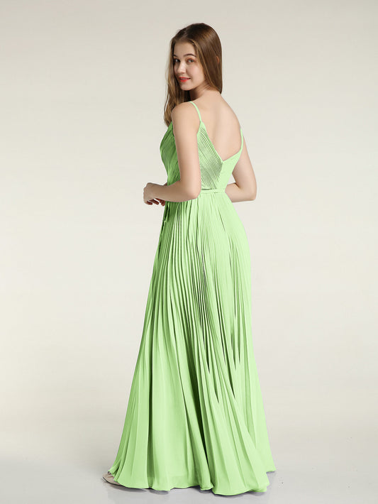 Babaroni MaudSencillos vestidos largos de chiffon con tirantes finos y abertura Salvia