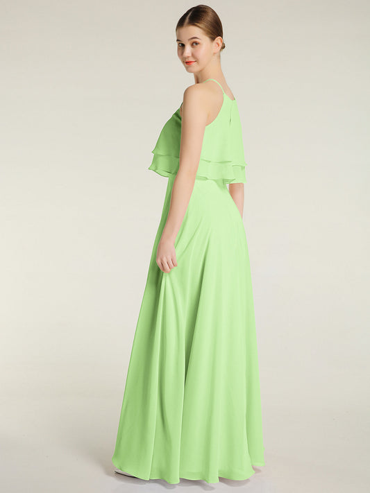 Babaroni FannyFanny Cabestro Largo Gasa Vestido De Dama De Honor Salvia