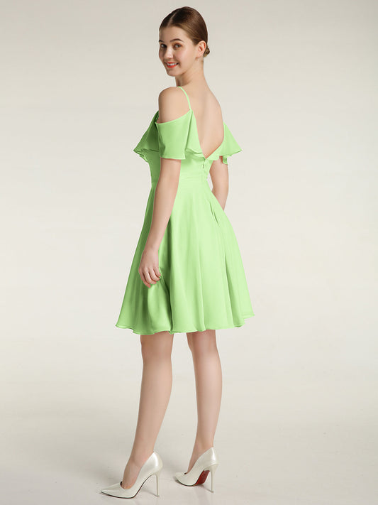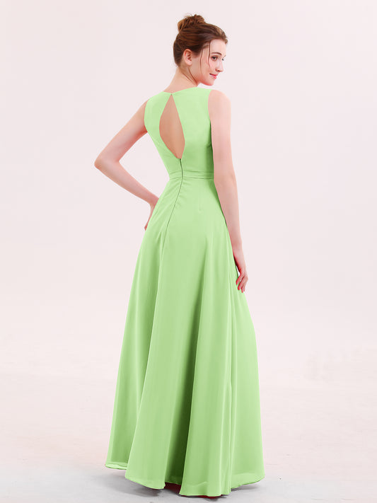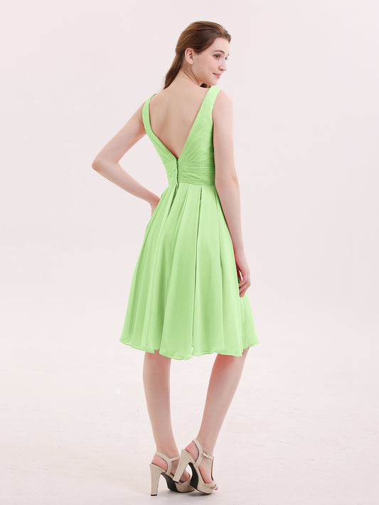 Babaroni MonicaVestidos de dama de honor de chiffon con escote en V y espalda cruzada Salvia