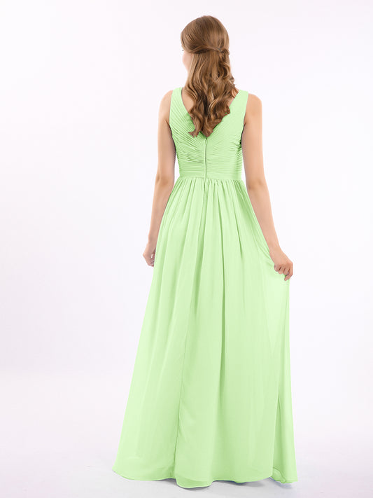 Babaroni JennyJenny Largo Vestidos De Dama De Honor Con Corpino Plisado Salvia