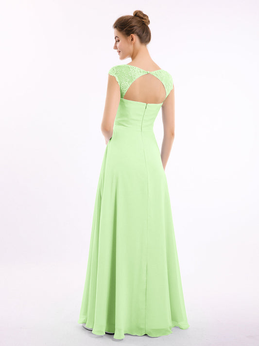 Babaroni MarleyVestidos de dama de honor de chiffon con mangas cap de encaje Salvia