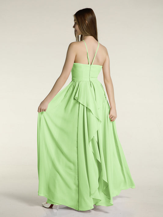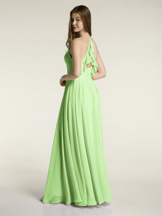 Babaroni MiriamVestidos largos de dama de honor estilo halter de chiffon Salvia