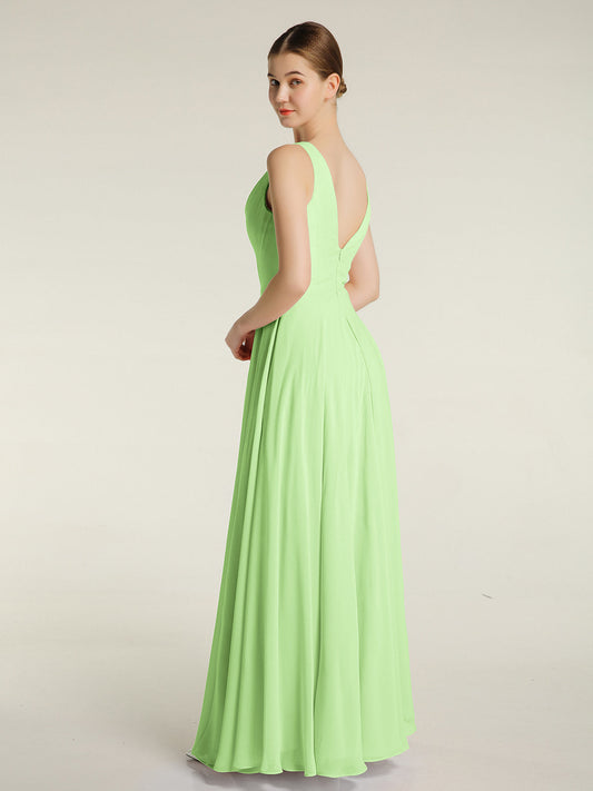 Babaroni CarolVestidos sencillos de chiffon con escote en V Salvia