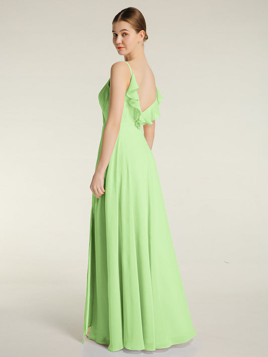 Babaroni TammyVestidos de chiffon con tirantes finos y escote en V Salvia