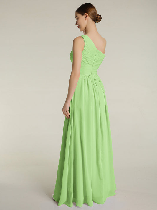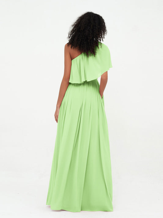Babaroni MildredVestidos largos de chiffon de un hombro con bolsillos Salvia