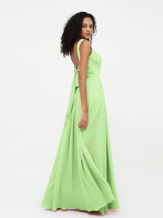 Babaroni VitaVestido de dama de honor de chiffon con escote en V y espalda descubierta Salvia