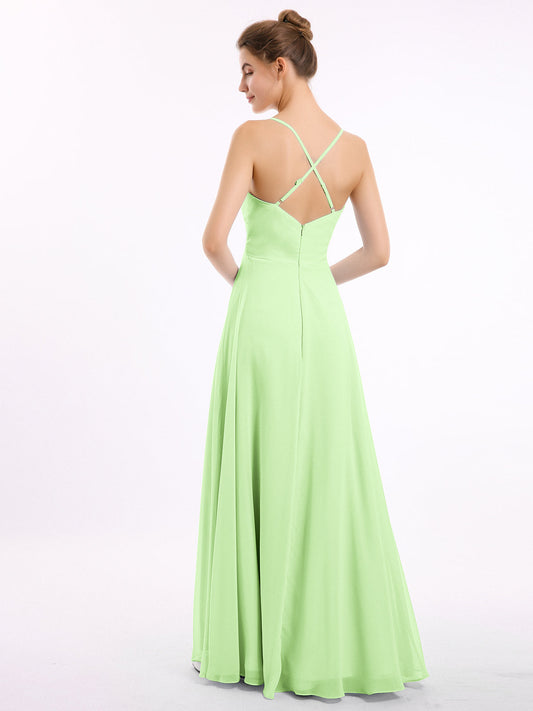 Babaroni FeliciaVestidos largos de chiffon con tirantes finos y escote en corazón Salvia