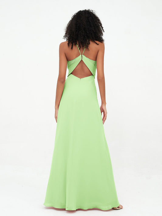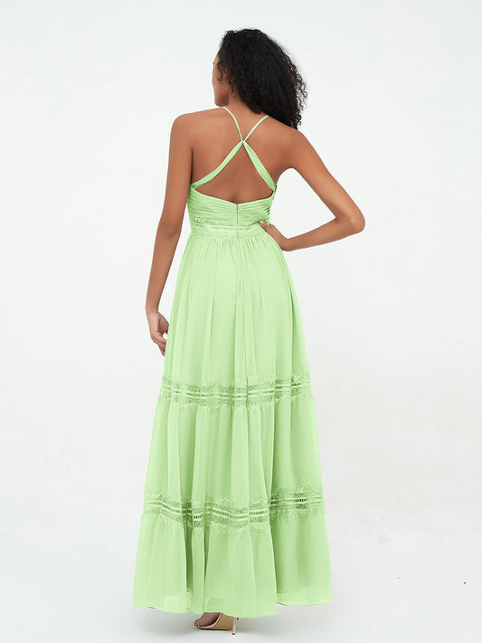 Babaroni FrancesVestidos de halter con top de encaje y espalda descubierta de gasa Salvia
