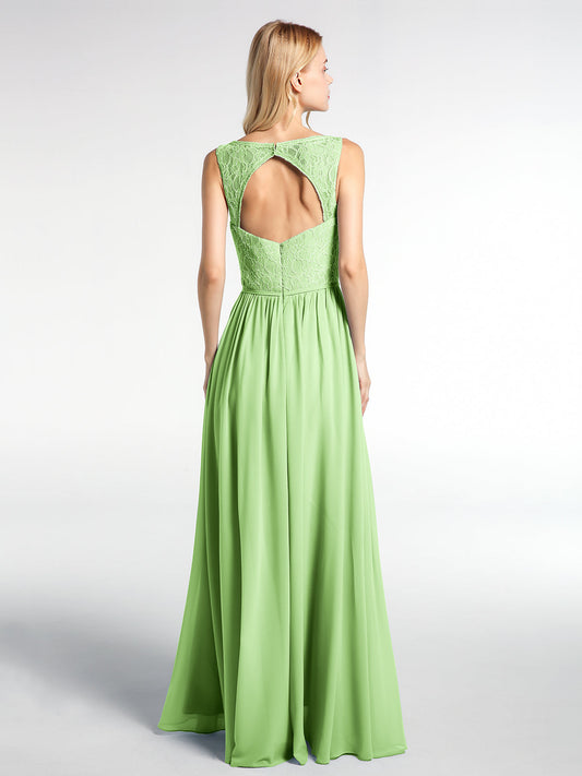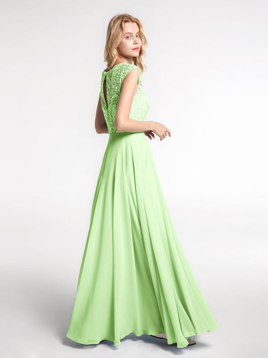 Babaroni PamelaVestido maxi de encaje y tul con escote ilusión Salvia