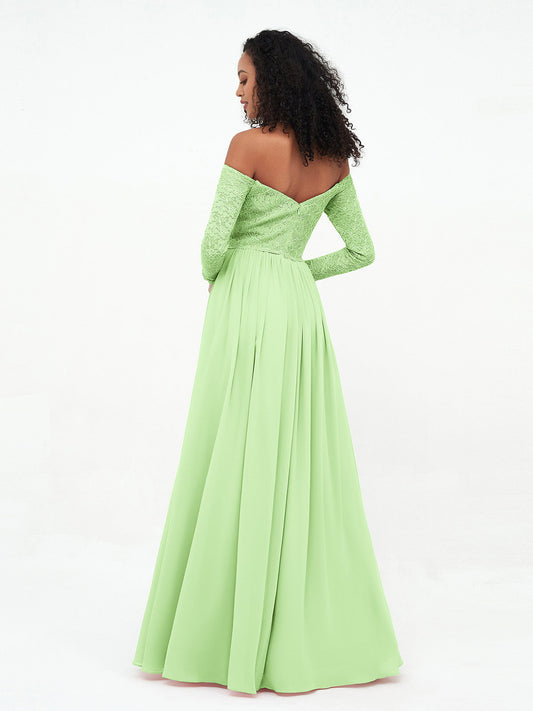 Babaroni JoannaVestidos largos de encaje con mangas largas y hombros descubiertos Salvia