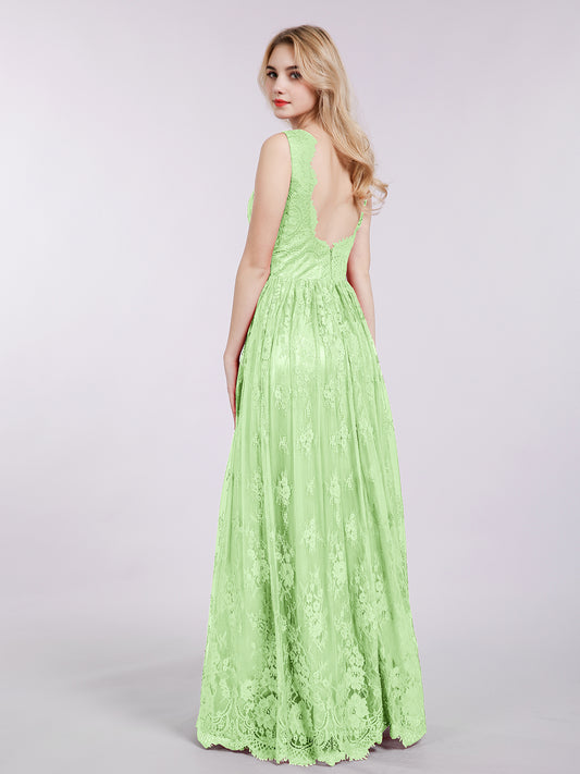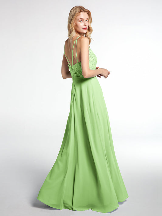 Babaroni LaraineVestido maxi con cuerpo de encaje y falda de chiffon con escote en V Salvia