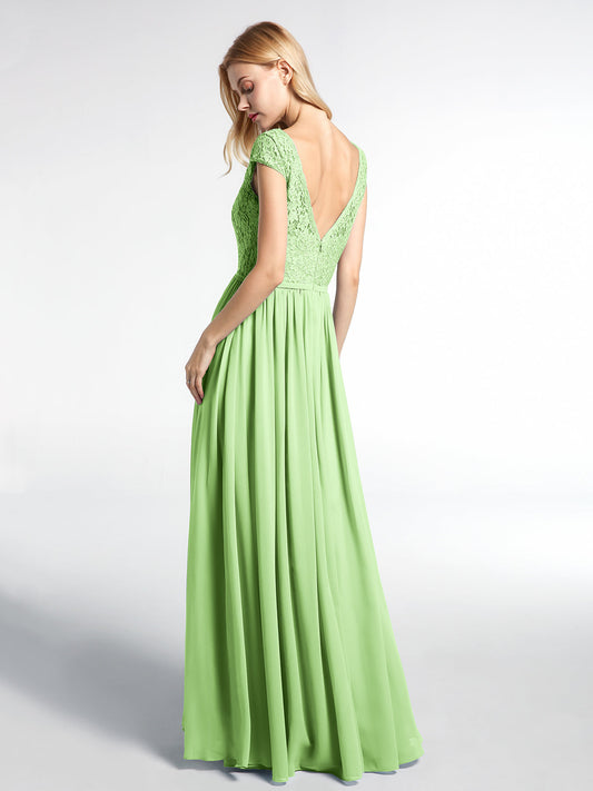 Babaroni SherryVestido maxi de encaje y chiffon con mangas cortas Salvia