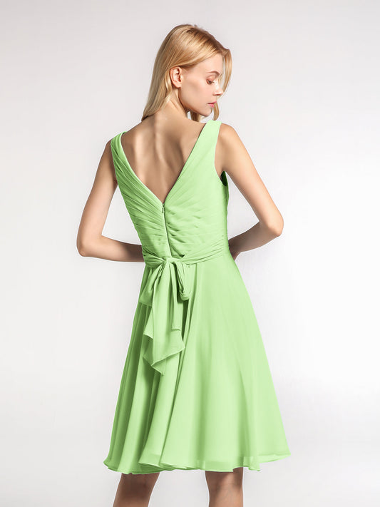 Babaroni ShirleyShirley Escote En V Gasa Corto Vestidos De Dama De Honor Salvia