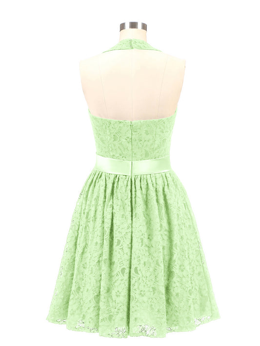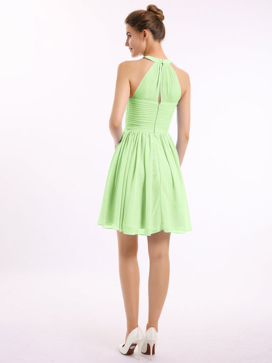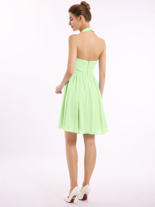 Babaroni KyreneVestidos cortos de chiffon estilo halter para damas de honor Salvia