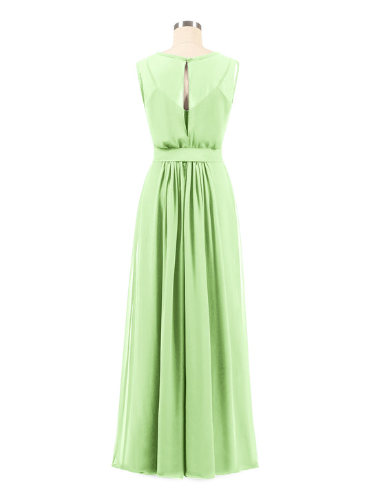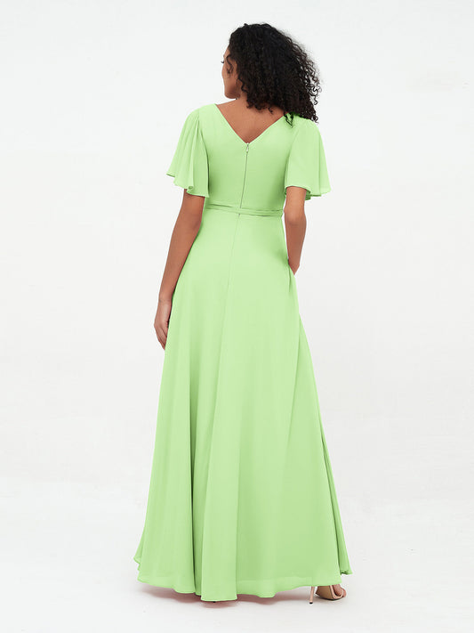 Babaroni YvetteVestidos máximos de chiffon con mangas de volantes y lazo en la cintura Salvia