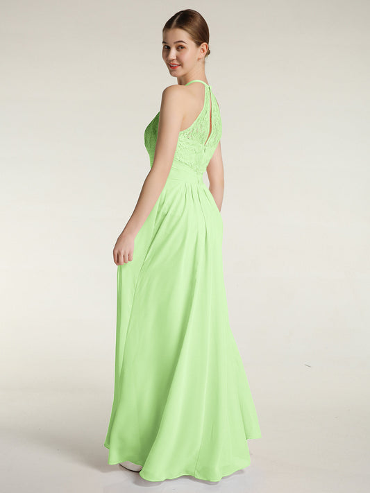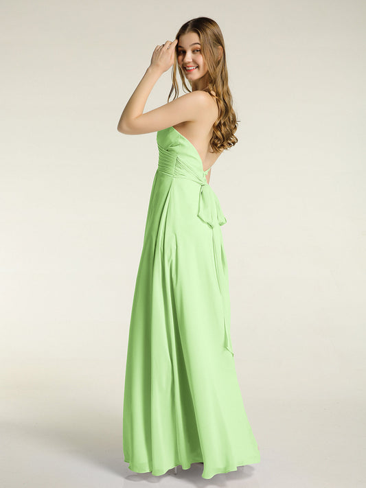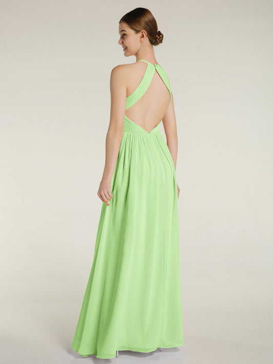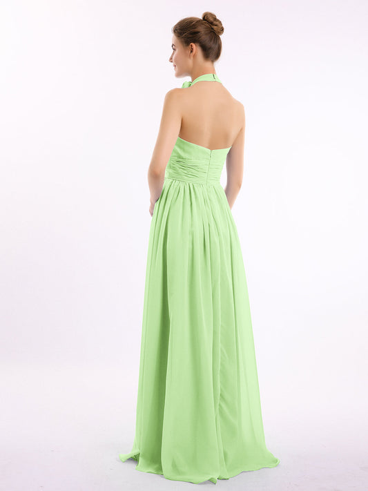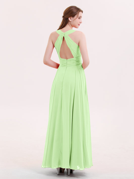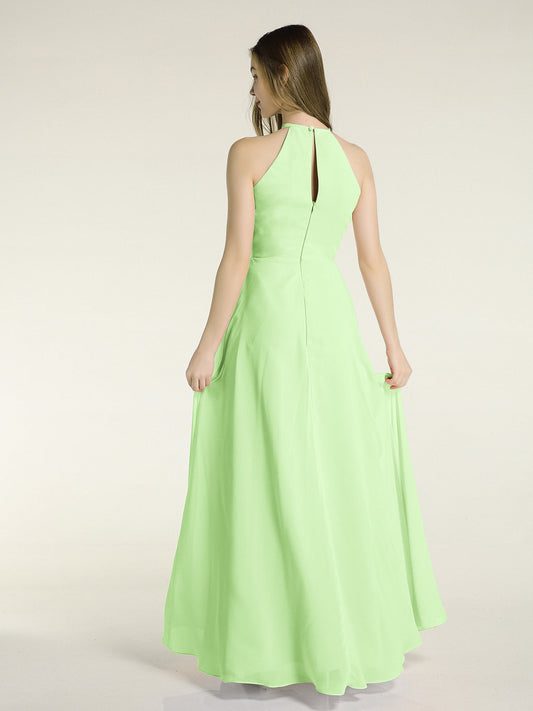 Babaroni MandyVestidos largos de chiffon estilo halter para damas de honor Salvia