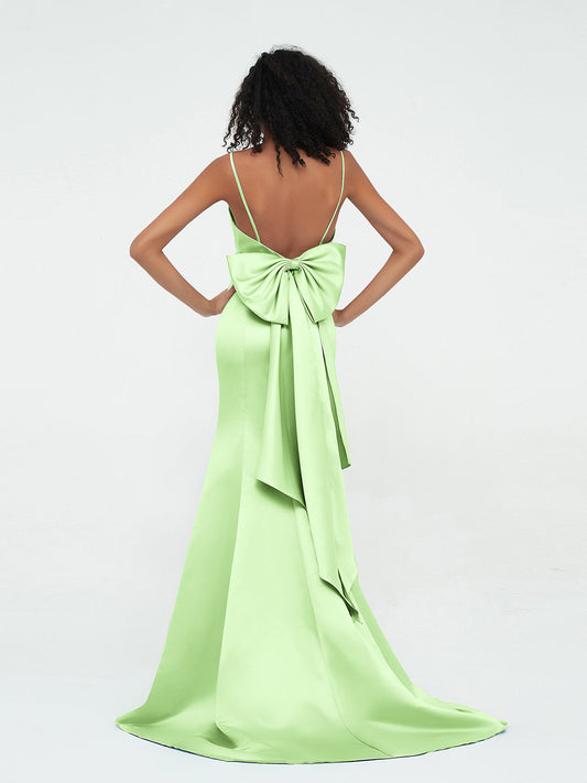 Babaroni MuseVestidos sirena de satén con tirantes spaghetti Salvia