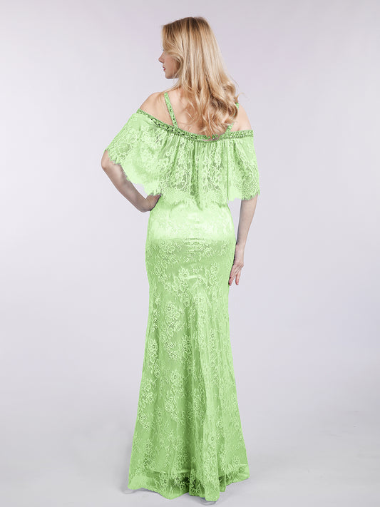 Babaroni JaylaVestidos con mangas de trompeta sexy y estilo sirena con hombros descubiertos Salvia