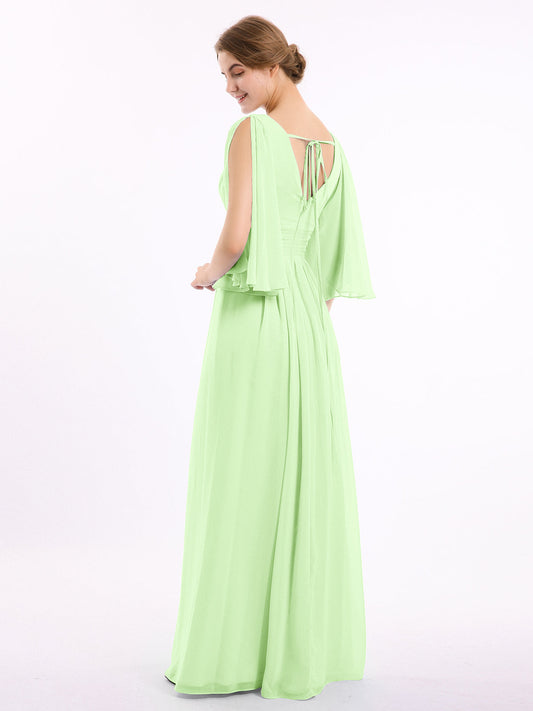 Babaroni NellyVestidos de chiffon con escote en V profundo y abertura Salvia