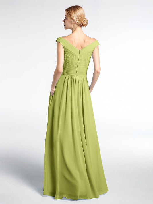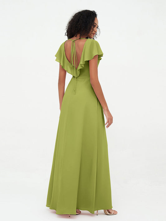 Babaroni PagVestidos estilo A-line de chiffon con escote en V y abertura Trébol