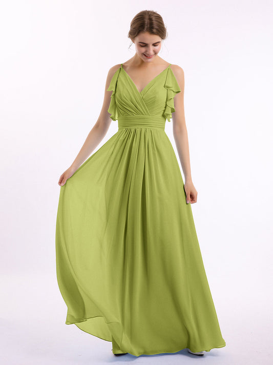 Babaroni VickyVestidos de dama de honor de chiffon con escote en V y tirantes finos Trébol