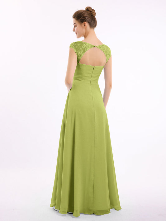 Babaroni MarleyVestidos de dama de honor de chiffon con mangas cap de encaje Trébol