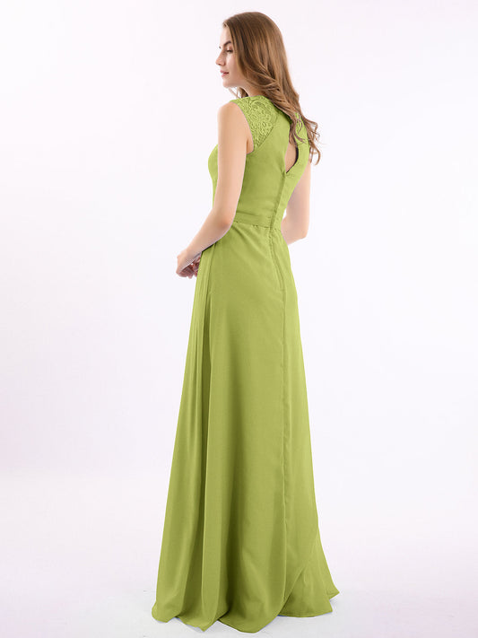 Babaroni LaurenVestidos largos de chiffon estilo princesa con abertura Trébol