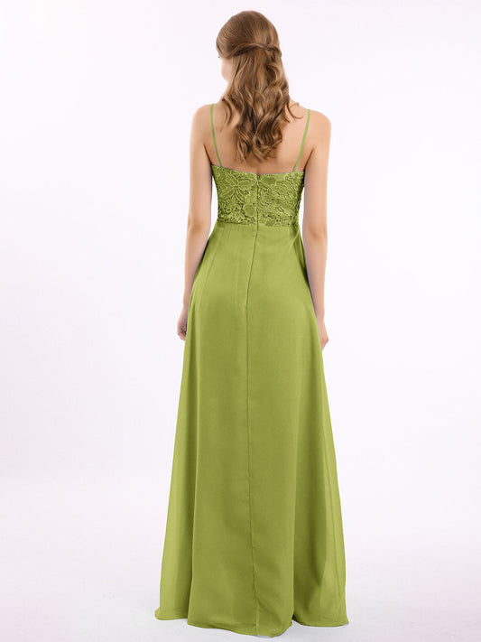 Babaroni CherryVestidos largos de encaje y chiffon con tirantes finos Trébol