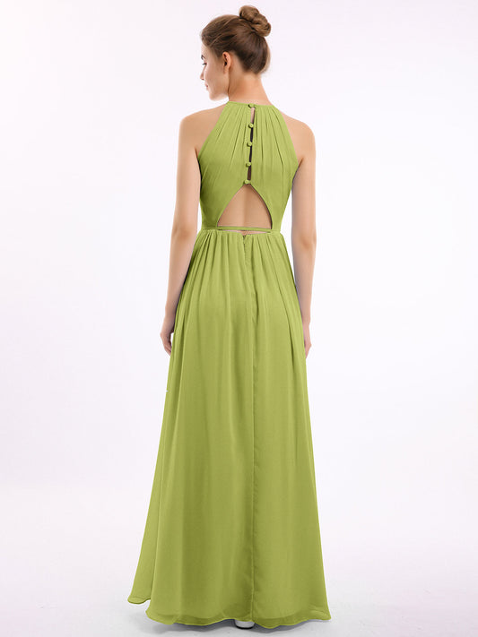 Babaroni CynthiaVestidos largos de chiffon estilo halter con espalda descubierta Trébol
