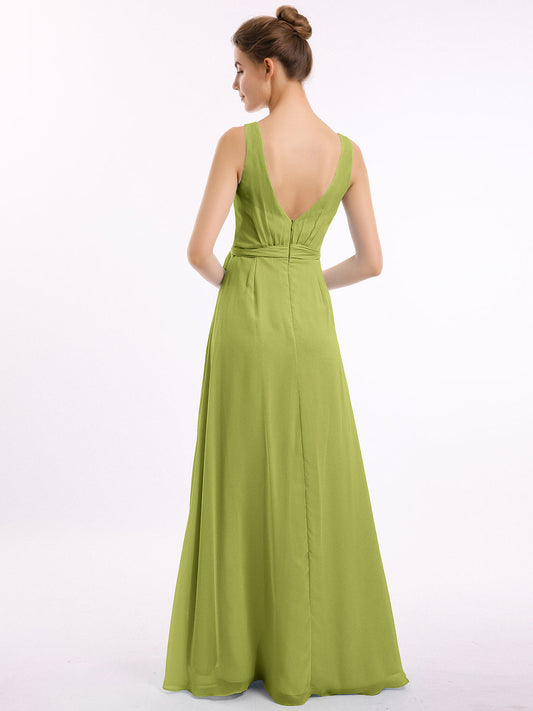 Babaroni GailVestidos largos de chiffon con escote en V hasta el suelo Trébol
