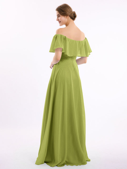 Babaroni HazelVestido largo de chiffon con hombros descubiertos Trébol