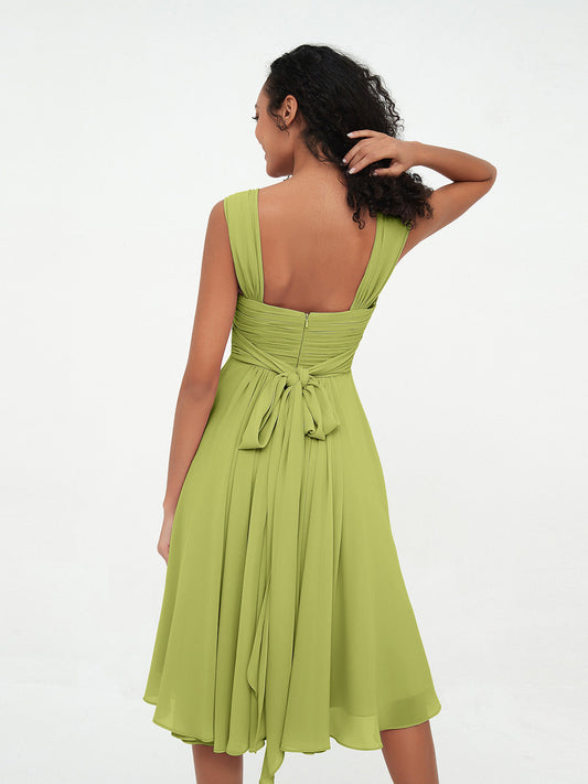 Babaroni LeeVestidos de dama de honor de chiffon con tirantes spaghetti y escote en V Trébol