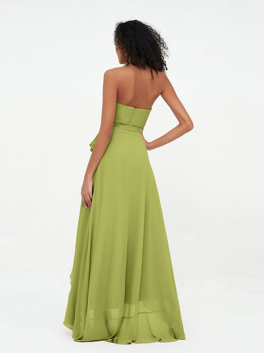 Babaroni VenusVestidos asimétricos de chiffon con cuello halter y escote en V profundo Trébol