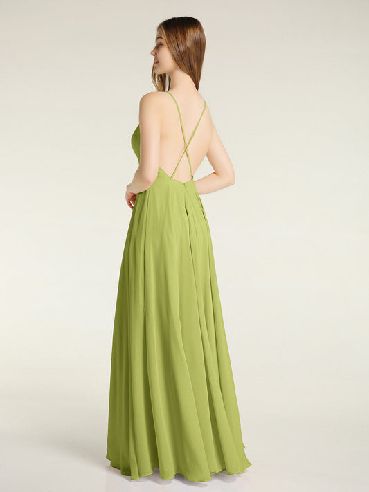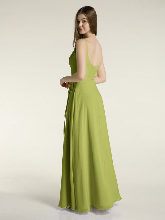 Babaroni MaudSencillos vestidos largos de chiffon con tirantes finos y abertura Trébol