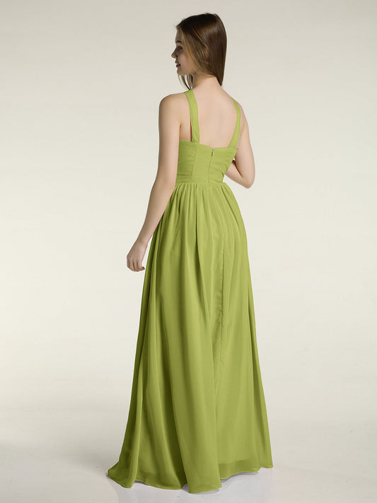 Babaroni MandyVestidos largos de chiffon estilo halter para damas de honor Trébol